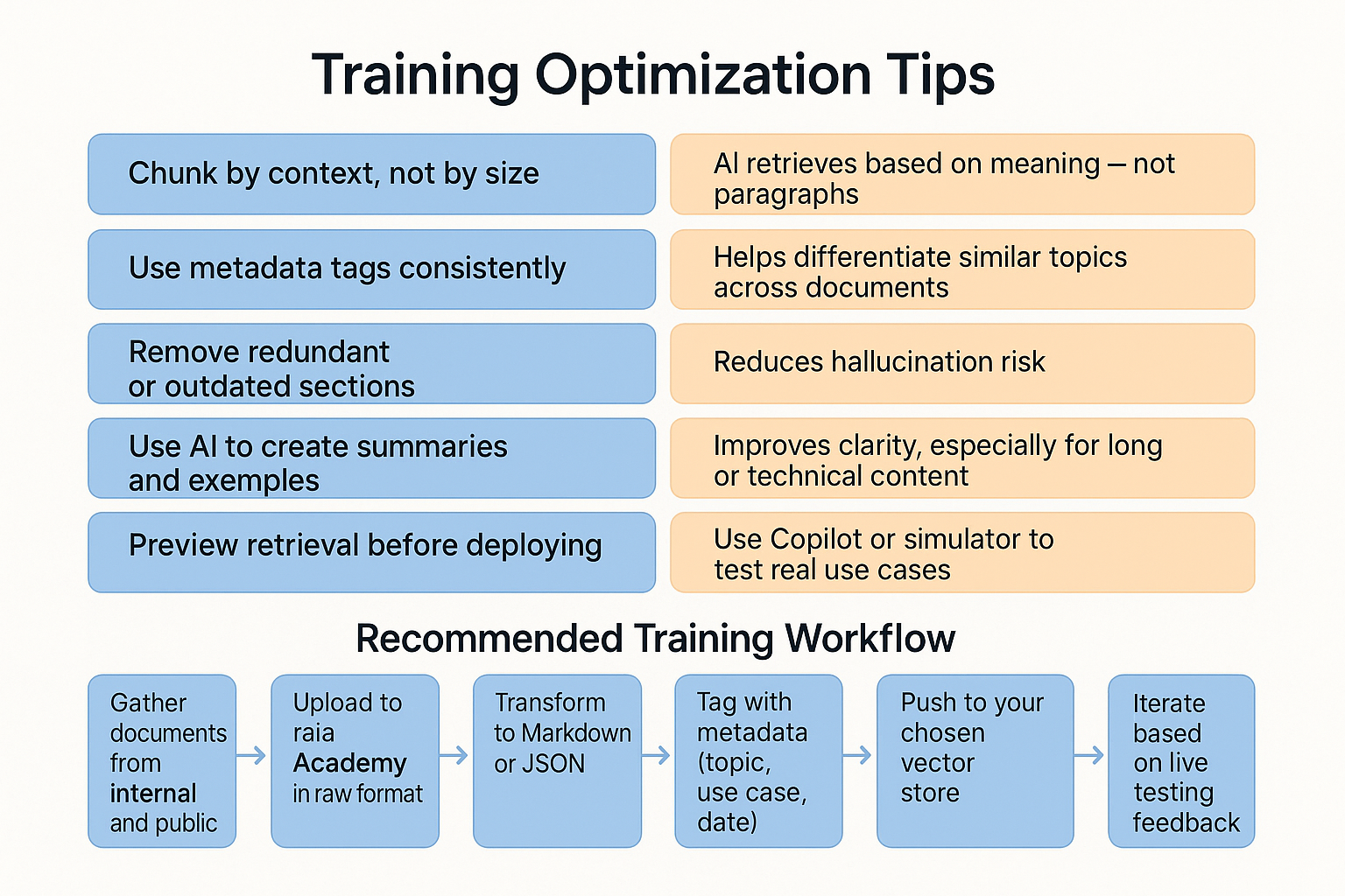 This lesson walks you through the process of **transforming raw business data** into optimized, AI-consumable formats using **raia Academy** — a no-code tool purpose-built for training agents effectively and efficiently.